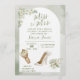 Celebrate the bride-to-be with this elegant sage green Miss to Mrs bridal shower invitation. Featuring a soft watercolor background, floral arch, and chic bridal elements like a bouquet and high heels, this design brings a romantic and modern touch to any shower theme.