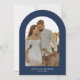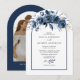 Invitación Elegant Modern Navy Blue Floral Arch Photo Wedding