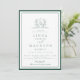 Invitación Elegant Navy Blue botanical crest monogram wedding