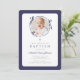 Elegant Navy Blue Bow Photo Boy Baptism Invitation. For best results upload a square image of the baby.