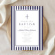 Invitación Elegant Navy Blue Cross Boy Baptism