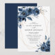 This elegant modern navy blue and silver watercolor floral wedding invitation features a beautiful mix of soft botanical florals and a chic geometric frame.