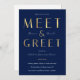 Create stylish networking event invites for your business with this elegant faux gold Meet & Greet Invitation design. This navy blue and gold effect company invite is great to use for social company events, dinner & drinks events and more. Featuring bold gold typography design and dark navy background, this business event marketing flyer allows you to edit the event details and background color so you can tailor it to suit your brand and event aesthetic.