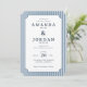 This elegant wedding invitation features a classic vertical layout with alternating blue and white stripes framing the central text, creating a timeless and sophisticated look. The design utilizes clean serif typography to convey essential details in a formal yet inviting manner, perfect for traditional celebrations. Decorative corner flourishes add subtle charm without overwhelming the refined aesthetic, while ample negative space ensures clarity and focus on the event's key information. Ideal for couples seeking a vintage-inspired touch, this invitation sets the tone for a joyous and memorable occasion.