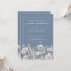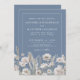 The design blends flowing script with classic serif typography at the top, striking a refined balance between modern elegance and traditional charm. Along the bottom, a delicate floral border showcases pampas grass and soft blooms in shades of white, cream, taupe, and gray, accented with subtle sage green foliage for a calm, natural touch that stands out beautifully against the rich blue background.