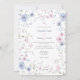 Elevate your wedding stationery with this elegant floral invitation. Featuring delicate dusty blue and soft pink watercolor flowers set against a white background, this design is perfect for romantic evening ceremonies, garden weddings, or fall and spring nuptials.