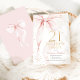 Elegant pink bow 21st birthday invitation. Feminine design in blush pink and gold. Features trendy watercolor coquette bow, and modern typography font. Perfect for an elegant style women's bday celebration. Personalize with your own details. Printed Zazzle invitations or instant download digital printable template.