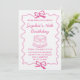 Celebrate in style with this charming Sweet 16 birthday invitation featuring a whimsical pink bow frame, elegant script typography, and a cute illustrated birthday cake centerpiece. The soft white textured background adds a touch of sophistication, making this design perfect for teens who love a fun, feminine, and classy aesthetic.