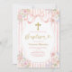 Invitación Elegant Pink Bow Coquette Girl Baptism Floral Gold