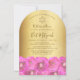 Invitación Elegant Pink Rose Floral Gold Bat Mitzvah