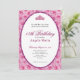 This elegant pink floral 18th birthday debut invitation has pink roses, a tiara crown, and a pink glitter oval with a personalizable template to create your own message. The invitation template is customizable in the listing editor and is also available as a digital download that's printable after you personalize it. The back has pink roses covering the entire surface to create and classic and classy mood for your event.