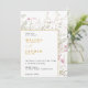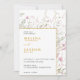 Invite your guests with this stunning and romantic wedding invitation, featuring delicate watercolor wild florals in soft pinks and greens. The design is framed by a chic gold border, perfectly highlighting the couple's names in a luxurious golden font. Set against a crisp white background with a blush pink envelope backer, this card embodies modern garden elegance and is perfect for a spring, summer, or outdoor celebration.