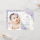 Invitación Elegant Purple Lavender Roses Floral Baptism Photo
