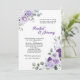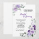 Elegant Purple Watercolor Floral Wedding Invitation with script font typography and heart accent.