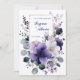 Invite your guests with breathtaking elegance using this sophisticated floral wedding invitation. The design showcases a stunning, painterly watercolor bouquet arranged gracefully around a central frame, set against a crisp white background. Gorgeous, large flowers in rich shades of deep purple, violet, and soft lavender provide dramatic focal points, beautifully contrasted by crisp white anemones and delicate smaller purple blossoms. This exquisite arrangement is artfully interwoven with dusty blue-green eucalyptus leaves, creating a fresh, romantic, and sophisticated feel. A minimalist, thin gold rectangular frame provides a perfect, elegant space for your event details. Perfect for sophisticated spring, summer, or elegant evening weddings, this design is also ideal for enchanting bridal showers, milestone birthday celebrations, anniversary parties, or upscale garden events. This versatile design can also be adapted for sophisticated corporate galas, charity fundraisers, or elegant announcements requiring a touch of refined floral beauty.