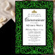 This elegant quinceanera invitation has green glitter scrollwork, a gold tiara crown, and a black background with a personalizable template to create your own message. The invitation template is customizable in the listing editor and is also available as a digital download that's printable after you personalize it.