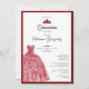 This elegant red and black quinceanera invitation has a dress, a red tiara crown, and a black border with a personalizable template to create your own message. The invitation template is customizable in the listing editor and is also available as a digital download that's printable after you personalize it.