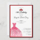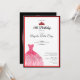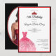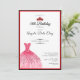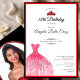 This elegant red and black 18th birthday debut invitation has a dress, a red tiara crown, and a black border with a personalizable template to create your own message. The invitation template is customizable in the listing editor and is also available as a digital download that's printable after you personalize it. The pretty and minimalist design is nice for a formal event to celebrate a milestone birthday.