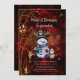 Invitación Elegant Red Gold Snowman & Characters Christmas