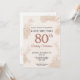 Celebrate a milestone 80th birthday with this elegant invitation. Featuring delicate botanical illustrations in rose gold and blush tones, set against a soft cream background, subtle gold glitter accents add a touch of sparkle. This customizable design offers a sophisticated and warm way to invite guests to a special celebration for your loved one. Perfect for a memorable 80th birthday party it captures the joy and grace of reaching this remarkable age. Easily personalize all event details for a truly unique celebration.