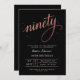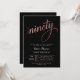 Celebrate nine wonderful decades with this elegant rose gold and black 90th birthday invitation. Featuring sophisticated calligraphy and shimmering metallic accents, this timeless design is perfect for family gatherings, formal dinners, or milestone celebrations. Easily personalize for a refined and memorable event.