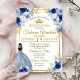 Invitación Elegant Royal Blue & Gold Rose Quinceañera