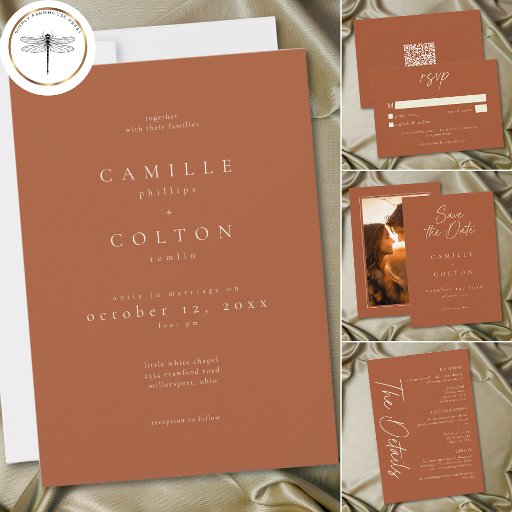 Invitación Elegant Rust Terracotta Minimalist Wedding