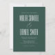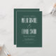 This chic wedding invitation will bring a touch of natural elegance and timeless beauty to your special day. The rich, deep green hue paired with subtle striking script, serif, and sans serif fonts creates a warm and inviting feel that sets the perfect tone for an unforgettable celebration. This piece features a unique blend of nature-inspired sophistication and understated refinement.