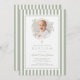 Invitación Elegant Sage Green Bow Photo Boy Baptism