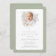 Invitación Elegant Sage Green Bow Photo Boy Baptism