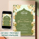 Celebrate the blessings of the holy month with this elegant Ramadan Kareem Iftar Dinner invitation. Featuring a sophisticated sage green backdrop, a classic arch frame, and delicate white roses with yellow accents, this design perfectly balances tradition and modern style. The hanging gold lanterns and Arabic calligraphy add a touch of spiritual warmth. This template is fully customizable, allowing you to easily update the names, date, time, and location for your private family gathering or community Iftar event.