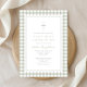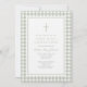Elegant Sage Green Gingham Girl First Communion Invitation.