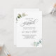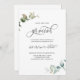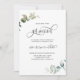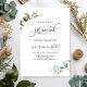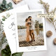 Elegante recepción/invitación a la fiesta "Nos casamos" con delicados detalles de color de agua Eucalyptus y hermosos elementos modernos de caligrafía escrita a mano. Opción para añadir en la parte posterior una fotografía o dejarla en negro. Parte de nuestra colección "Minimal and Graceful Eucalyptus Boda" con suite de coordinación completa y artículos de día de eventos disponibles.