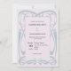 A harmony of grace and refinement, this elegant wedding invitation captures the timeless allure of Art Nouveau design. A motif of flowing, silvery blue ribons curl and intertwine across a soft lilac background. The composition is then finished off with complimentary deep purple typography. The graceful symmetry of the design evokes a unique mixture of vintage opulence and modern chic. Perfect for fans of vintage design or those who are looking for an invitation that feels equally classic and contemporary.
