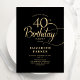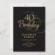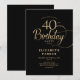 Invitación Elegant Simple Black Gold Script 40th Birthday