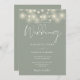 This elegant script sage green wedding invitation, featuring pretty string lights, can be personalized with your information in chic typography. Designed by Thisisnotme©