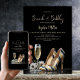 Invite your friends and family to attend your brunch and bubbly bridal shower with this elegant invitation featuring black, gold and white high heel shoes and a glass of champagne. You can effortlessly add all the necessary details to the customizable text. Choose from various paper types and corner styles to make your invitations unique. Additionally, you have the option to download the invitation if you prefer a digital format.