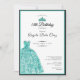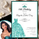 This elegant teal and black 18th birthday debut invitation has a dress, a teal tiara crown, and a black border with a personalizable template to create your own message. The invitation template is customizable in the listing editor and is also available as a digital download that's printable after you personalize it. The elegant and minimalist design is nice for a formal event to celebrate a milestone birthday.