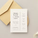 The thoughtfully structured format showcases the couple’s names prominently on one side, while the ceremony, dinner, dress code, and RSVP details are beautifully organized on the other. A subtle vertical divider adds contemporary structure, creating a polished and editorial-inspired aesthetic.