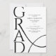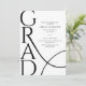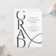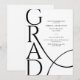 Celebrate a proud academic milestone with this elegant minimalist graduation party invitation. The design features bold modern typography with the word “GRAD” displayed in a large vertical layout, creating a stylish and contemporary look. Clean black text on a crisp white background adds a timeless and sophisticated feel. A subtle flowing line detail adds movement while keeping the design simple and refined.
