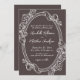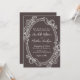 Dark Brown Filigree Frame Wedding Invitation. Add a warm, elegant touch to your wedding with this sophisticated design. The invitation features rich dark brown backgrounds on both sides, creating a refined, timeless base.