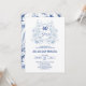 An elegant design featuring a blue Victorian crest frame, elegant calligraphy and a blue nature toile on the back of the invitation. Customize the details for a unique and chic Wedding Anniversary Celebration.