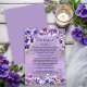 Complete your wedding suite with this elegant violet floral details card featuring romantic botanical blooms in soft purple and lavender tones. Designed to coordinate seamlessly with matching invitations and RSVP cards, this piece provides space for reception, accommodations, and additional information in a refined and timeless layout. Ideal for classic, garden, and formal wedding celebrations.