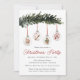 Invite guests to celebrate the season with this elegant watercolor Christmas party invitation featuring festive ornaments hanging from a pine greenery garland. Each ornament showcases a charming holiday detail — a gingerbread house, candy cane with cinnamon stick, Christmas tree, and a cozy cup of hot cocoa. “Christmas Party” is displayed in a handwritten red script with your party details below, creating a rustic yet refined design perfect for holiday gatherings.