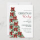 Elegant Watercolor Red Bow Christmas Tree Holiday Party Invitation.