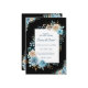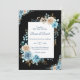 Invite your loved ones to a timeless celebration with this elegant wedding invitation. Featuring a sophisticated black background and a delicate floral arrangement in shades of blue, white, and beige, this design blends classic romance with modern style. The central white panel highlights your event details with refined typography, making it perfect for formal weddings and upscale receptions. Fully customizable to reflect your special day.