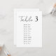 Minimalist Elegant Wedding Seating Chart featuring graceful script table numbers in a modern black and white design. Perfect for stylish weddings, this customizable table list card allows you to personalize the numbers and names of up to 10 guests per table. Elegant and timeless, it adds a sophisticated touch to your wedding décor. Printed on both sides for a refined and complete look from every angle.