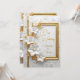 Invitación Elegant Wedding White Embossed Gold Diamond Floral