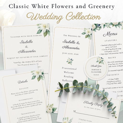 Classic White Flowers & Greenery | WeddingDiseñado por Nicola M.