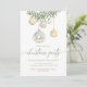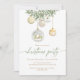 Invite your guests in timeless style with this elegant Christmas party invitation featuring delicate watercolor greenery and shimmering glass ornaments in gold and white tones. The refined calligraphy script adds a touch of sophistication, perfect for formal Christmas dinners, holiday soirées, or winter celebrations. A beautiful choice for anyone who loves classic, elegant holiday design.